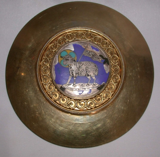 Chapelle d'orfèvrerie : calice, patène, 2 burettes et leur bassin, clochette,