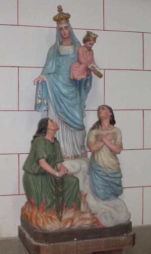 Groupe sculpté sur culot : Vierge à l'Enfant avec les Ames du Purgatoire,