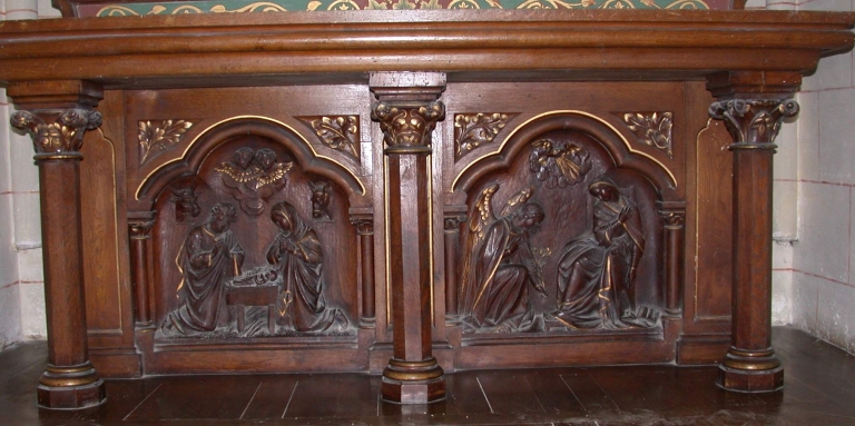 Ensemble de l'autel de la Vierge : autel, tabernacle, gradin d'autel, 2 degrés d'autel,
