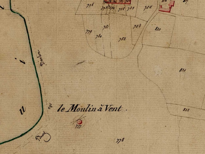 Le Moulin à vent au sud du bourg sur le cadastre de 1823Immatriculation
