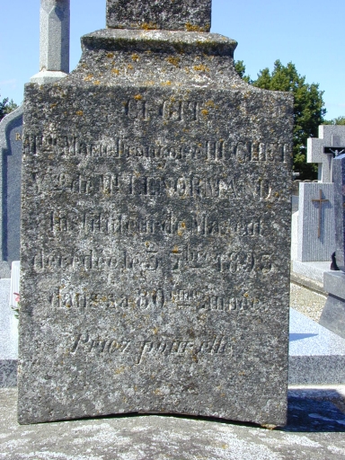 Tombe de Marie-Françoise Huchet, socle épigraphique : détailImmatriculation