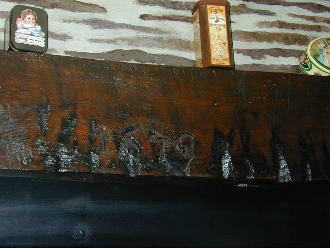 Intérieur, linteau de cheminée remployé, gravé d'une date : détailImmatriculation