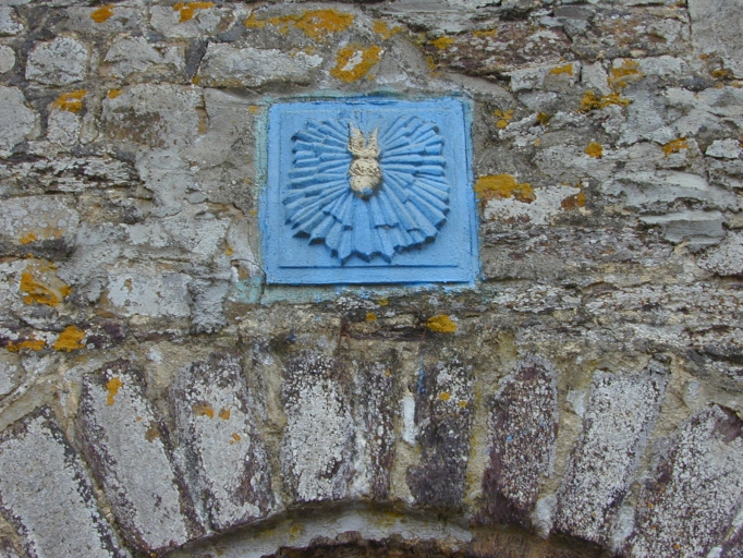 Le logis, plaque de ciment représetant un Sacré-Coeur : détailImmatriculation