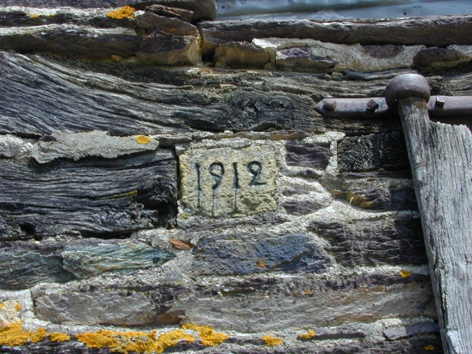 L'étable, pierre gravée d'une date enchâssée dans la façade : détailImmatriculation