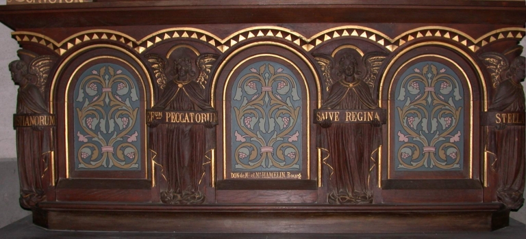 Ensemble de l'autel de la Vierge : autel, tabernacle, retable, 2 gradins d'autel, degré d'autel,