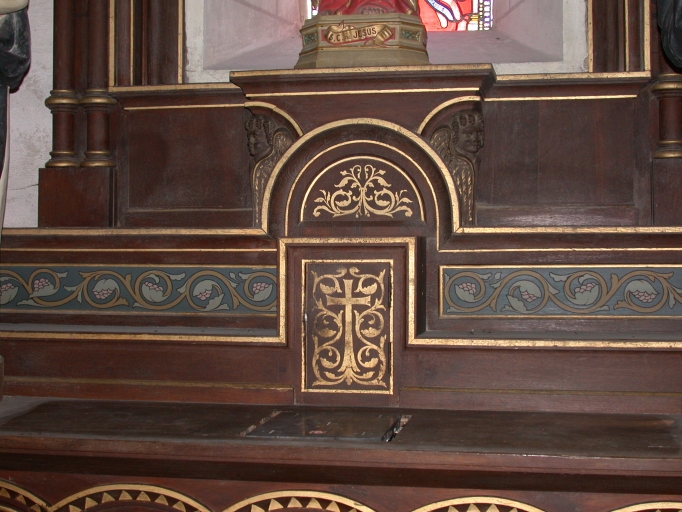 Ensemble de l'autel de la Vierge : autel, tabernacle, retable, 2 gradins d'autel, degré d'autel,