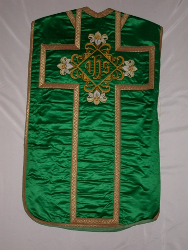 Ornement vert 1 : chasuble, étole, voile de calice,