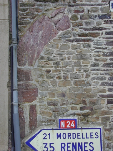 Détail : façade nord, piédroit de porte plein-cintreImmatriculation