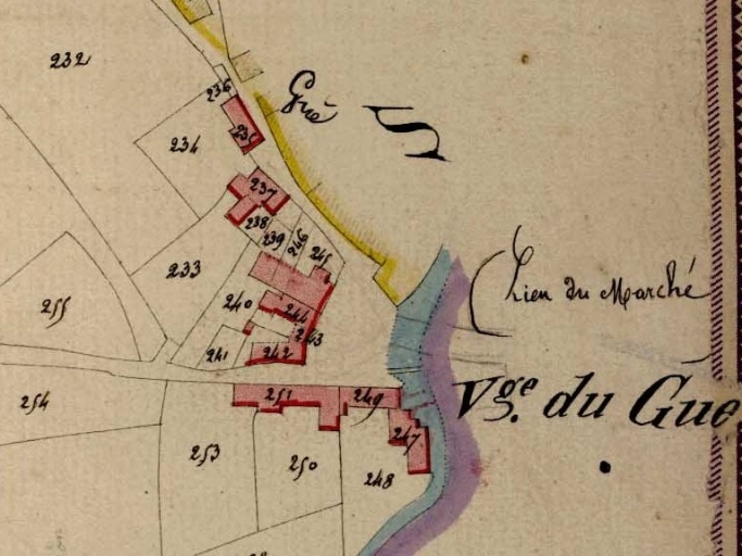 Extrait du cadastre de 1823 ; partie ouest du Gué (commune de Paimpont)Immatriculation