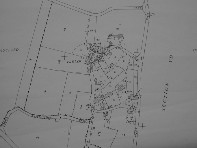 Extrait du cadastre de 1995 ; partie ouest du hameauImmatriculation