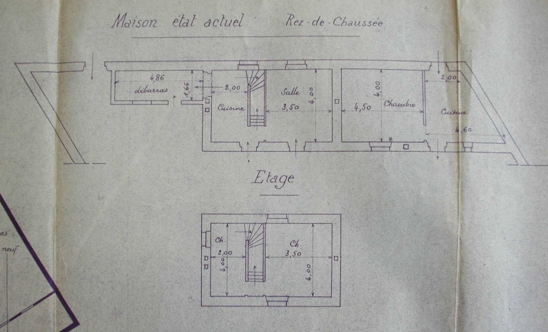 Propriété Garrigues. Agrandissement et surélévation. Etat actuel, plan, par E. Garrigues architecte, 1949 (A. C. Rennes)Immatriculation