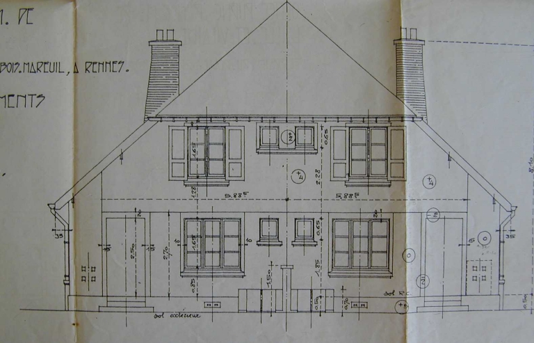 Maison de type 1 : façade principale, 1931 (A. C. Rennes)Immatriculation