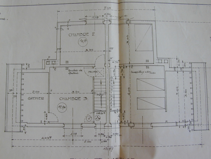 Maison de type 2 : plan de l'étage, 1931 (A. C. Rennes)Immatriculation