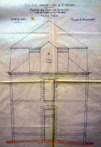 Pavillon nord-est, façade ouest, 1905 (A. C. Rennes)Immatriculation