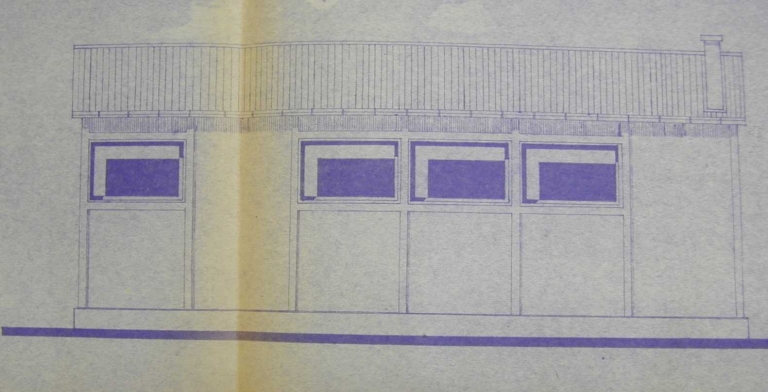Elévation des classes préfabriquées construites en 1963 (A. C. Rennes)Immatriculation
