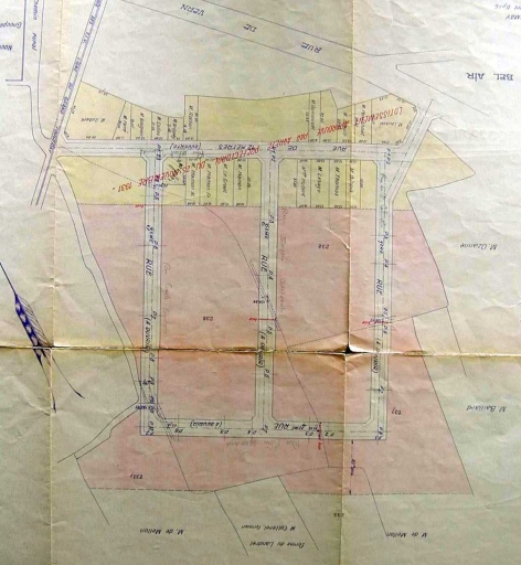 Plan du lotissement autorisé en 1933, en jaune figure le lotissement autorisé en 1931 (A. C. RennesImmatriculation