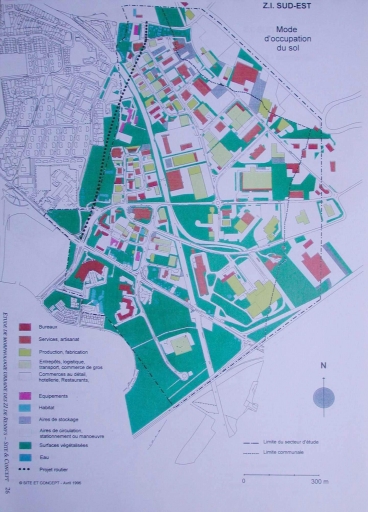 Mode d'occupation du sol, extrait de Etude de morphologie urbaine des zones d'activités, par le cabinet Site et Concept, 1996.Immatriculation
