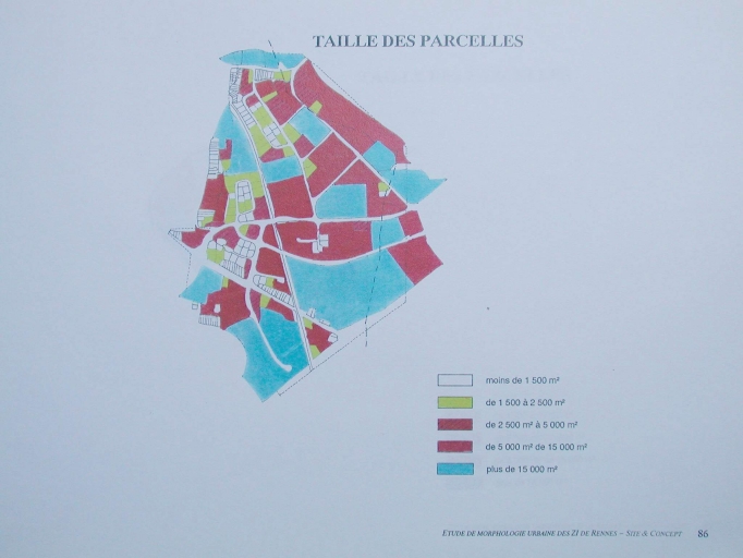 Taille des parcelles, extrait de Etude de morphologie urbaine des zones d'activités, par le cabinet Site et Concept, 1996.Immatriculation