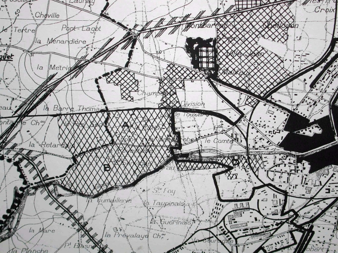 Situation de la zone industrielle sur le plan Lefort de 1945 (A. C. Rennes)Immatriculation