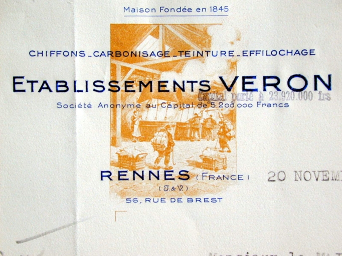 Usine textile, anciens établissements Véron, puis Monier, rue de Lorient, les Baudières (Rennes),