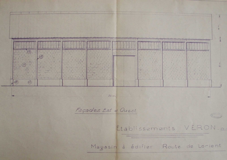 Façade est et ouest du magasin construit en 1950 (A. C. Rennes)Immatriculation
