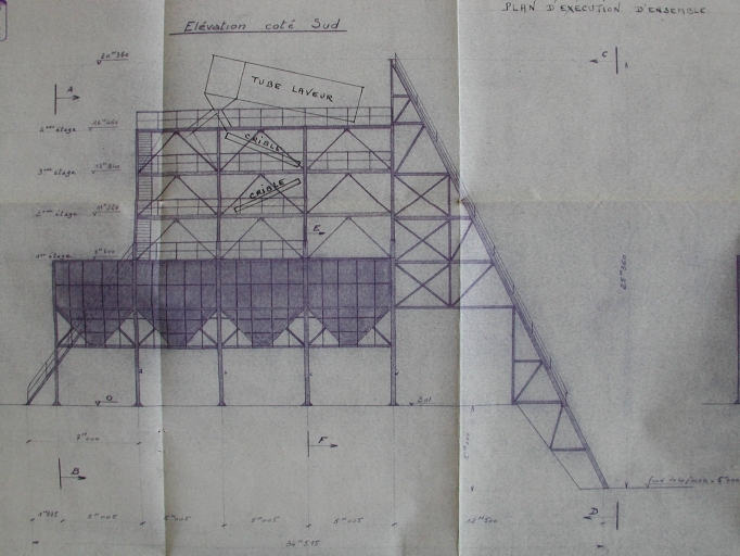 Groupe de lavage et de criblage des sables et graviers, élévation sud, 1957 (A. C. Rennes)Immatriculation