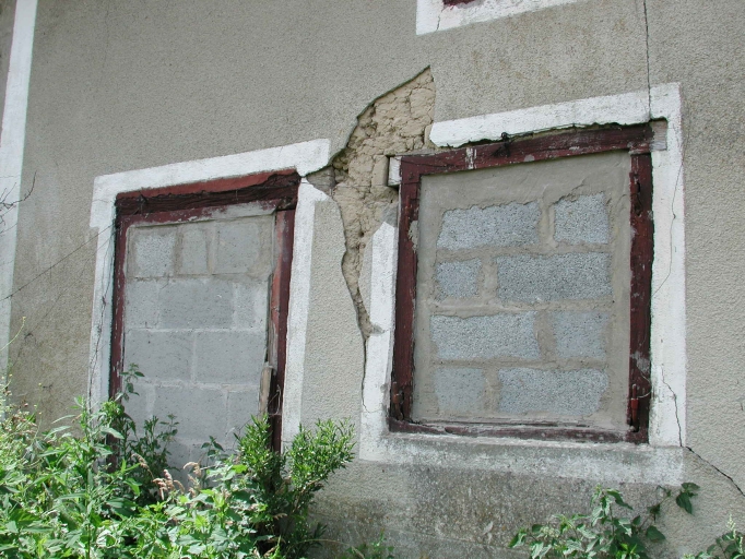 Détail sur l'enduit de la façade du logis, à l'est de l'alignementImmatriculation