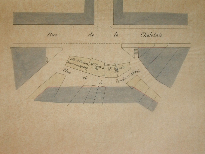 Plan des maisons à détruire, 1909 (A. C. Rennes)Immatriculation