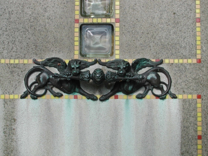 Tombeau de la famille Robin, détail sur la poignée de la porteImmatriculation