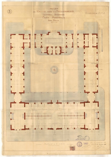 Halle centrale, plan du rez-de-chaussée, dessin d'exécution, par Emmanuel Le Ray, 1912 (A. C. Rennes ; 2 Fi 705)Immatriculation