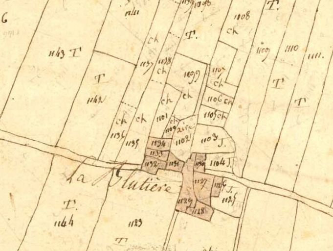 Le hameau de la Blutière, aujourd'hui disparu, sur le cadastre de 1810Immatriculation