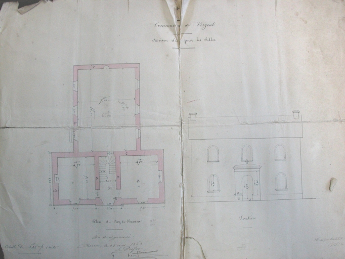 Plans de l'école des filles ; élévation, plan de rez-de-chausséeImmatriculation
