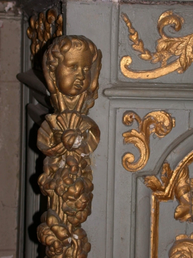 Décor de l'angle gauche de l'autel : angelot et chute de fleursImmatriculation