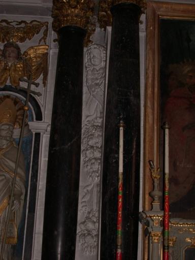 Retable, décor sculpté entre les colonnettes de droite : angelot et chute de fleursImmatriculation