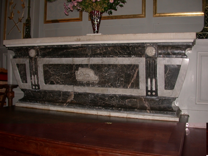 Ensembe du maître-autel : autel, retable, 3 gradins d'autel, tabernacle, 2 degrés d'autel,