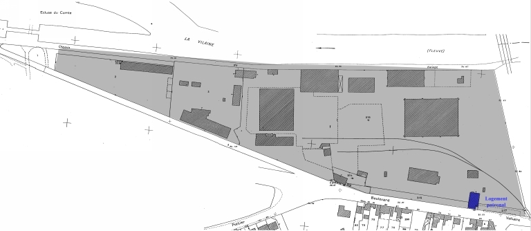 Usine à gaz dite Société Anonyme du Gaz de Rennes, puis Compagnie du Bourbonnais, actuellement EDF-GDF, 95 boulevard Voltaire (Rennes),
