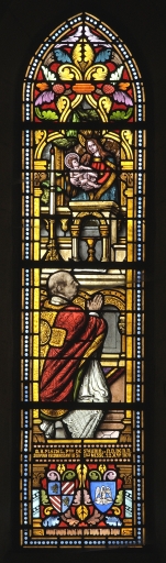 Verrière de la baie 5 : Le père Plénel célébre la messeImmatriculation
