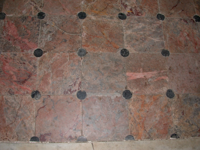 Degrés d'autel : détail du pavement de marbreImmatriculation