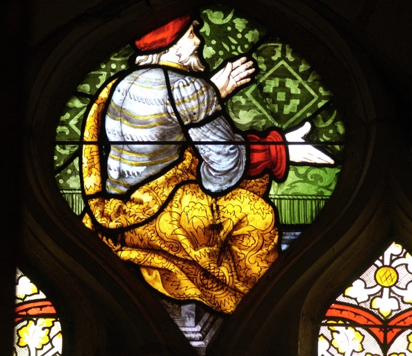 Verrière de la baie 2, tympan : Personnage assis discutantImmatriculation