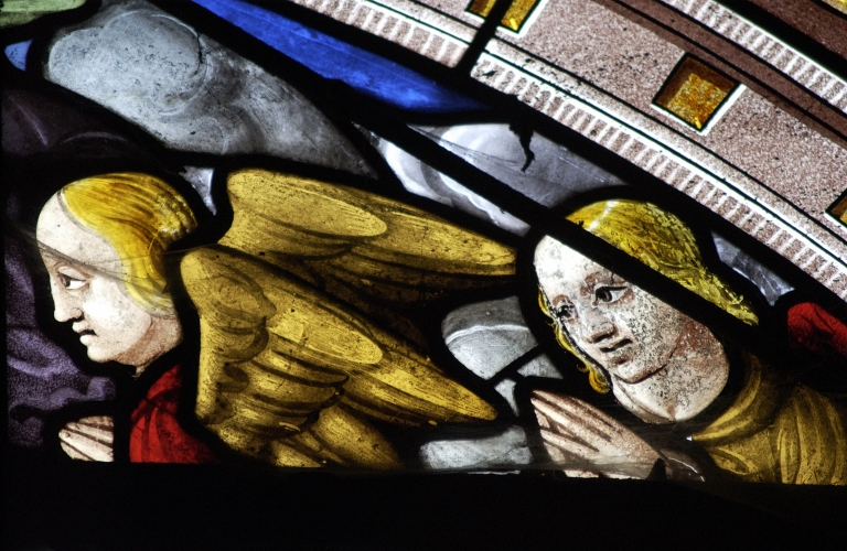 Verrière de la baie 5, tympan : anges de droiteImmatriculation