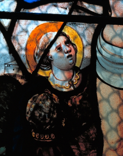 Verrière à personnages de la baie 14 : Christ en croix et sainte Madeleine,