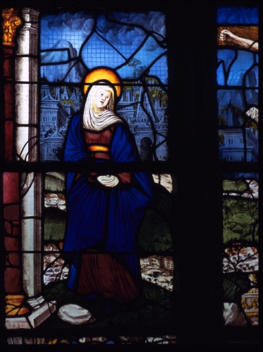Panneau supérieur gauche : la Vierge au pied de la CroixImmatriculation