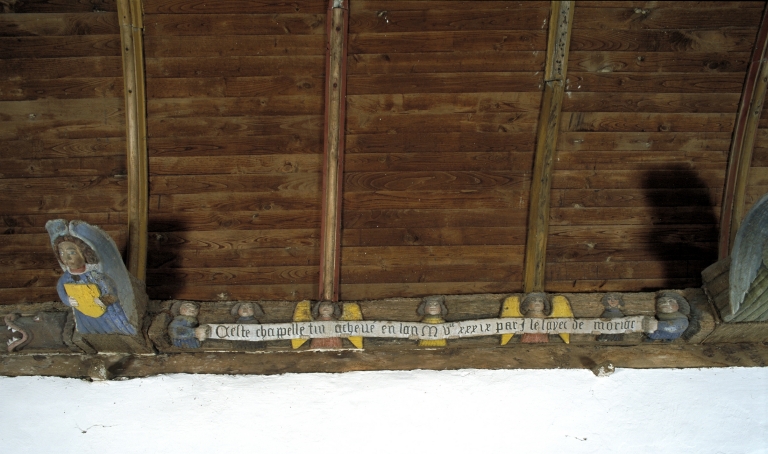 Sablière du bas-côté nord portant la date de construction.Immatriculation