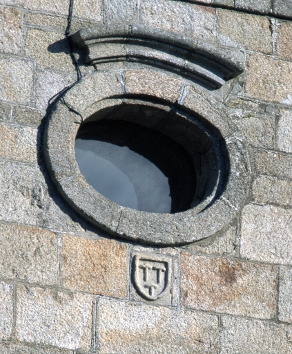 Détail de la tour-porche avec blason des MartelImmatriculation