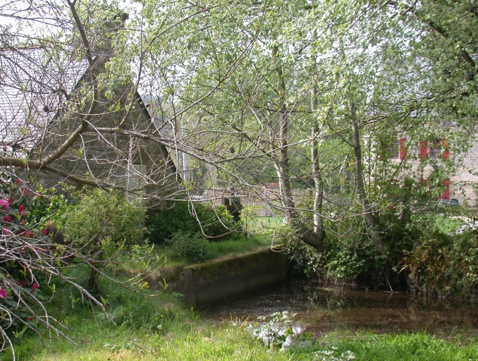 Vue d'ensemble du pignon du moulin et de la ferme de Tréblavet.Immatriculation