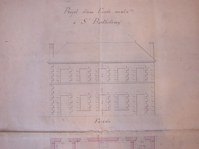 Façade de l'école, 1879 (A.D. du Morbihan, série O)Immatriculation
