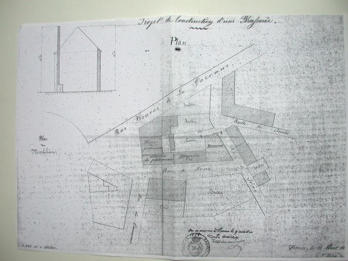 Projet de construction d'une brasserie pour Caro. Plan d'ensemble, 1854. AD Morbihan 5M 525.Immatriculation