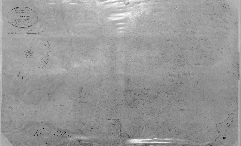 Cadastre napoléonien, section C du bourg, 2ème feuille, partie droite du plan, par Delpeuch géomètre, 1819, 1/2500e.Immatriculation