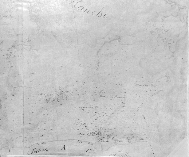 Cadastre napoléonien, section C du bourg, 1ère feuille, partie gauche du plan, par Delpeuch géomètre, 1819, 1/2500e.Immatriculation