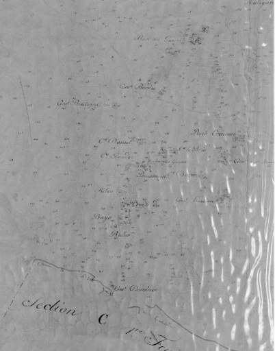 Cadastre napoléonien, section A de Larmor, 1ère feuille, détail, par Delpeuch géomètre, 1819, 1/2500e.Immatriculation
